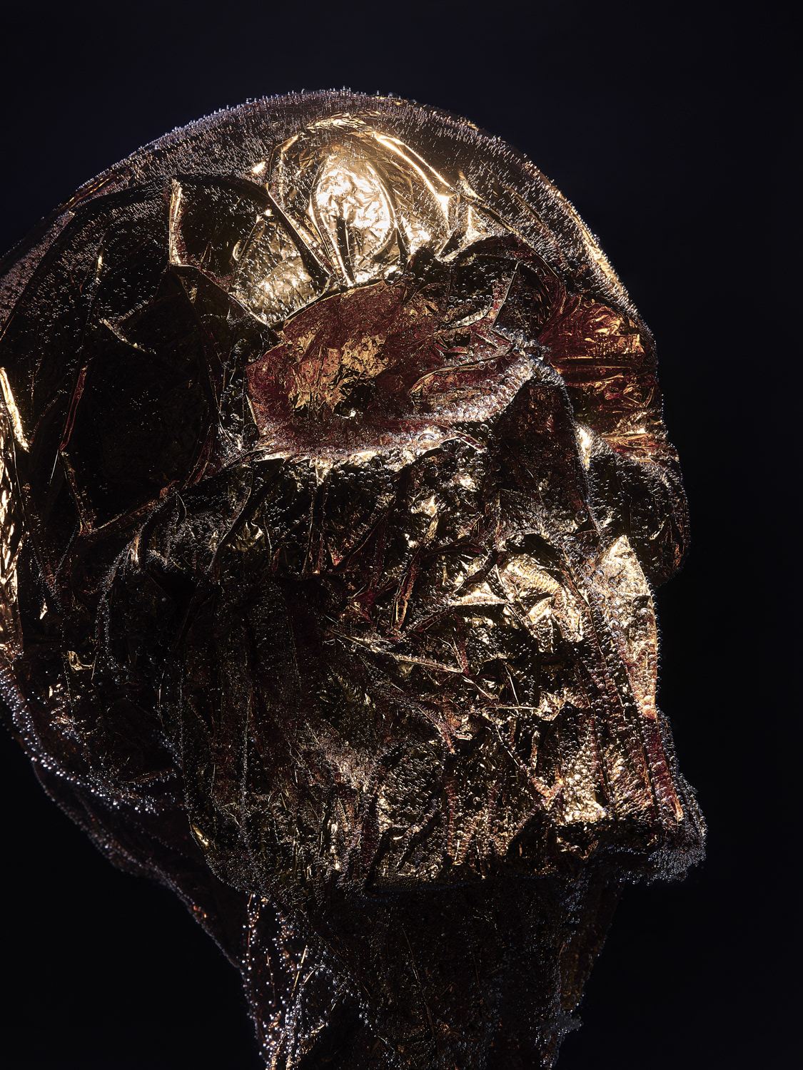 Gilded in opulence, the skull beckons reflection, a contemporary memento mori. A fusion of mortality and wealth, it challenges societal pursuits. In its gleam, echoes the impermanence of life, an artistic dialogue on transience. Adorned with precious metals, it invites contemplation on mortality's intrinsic value. Reflecting opulence and decay, it questions the pursuit of ephemeral treasures, as a timeless reminder.
